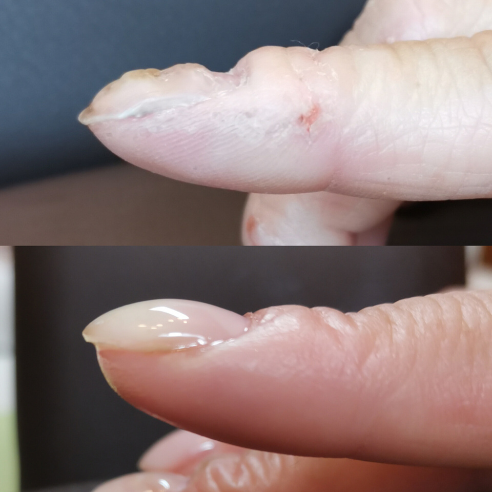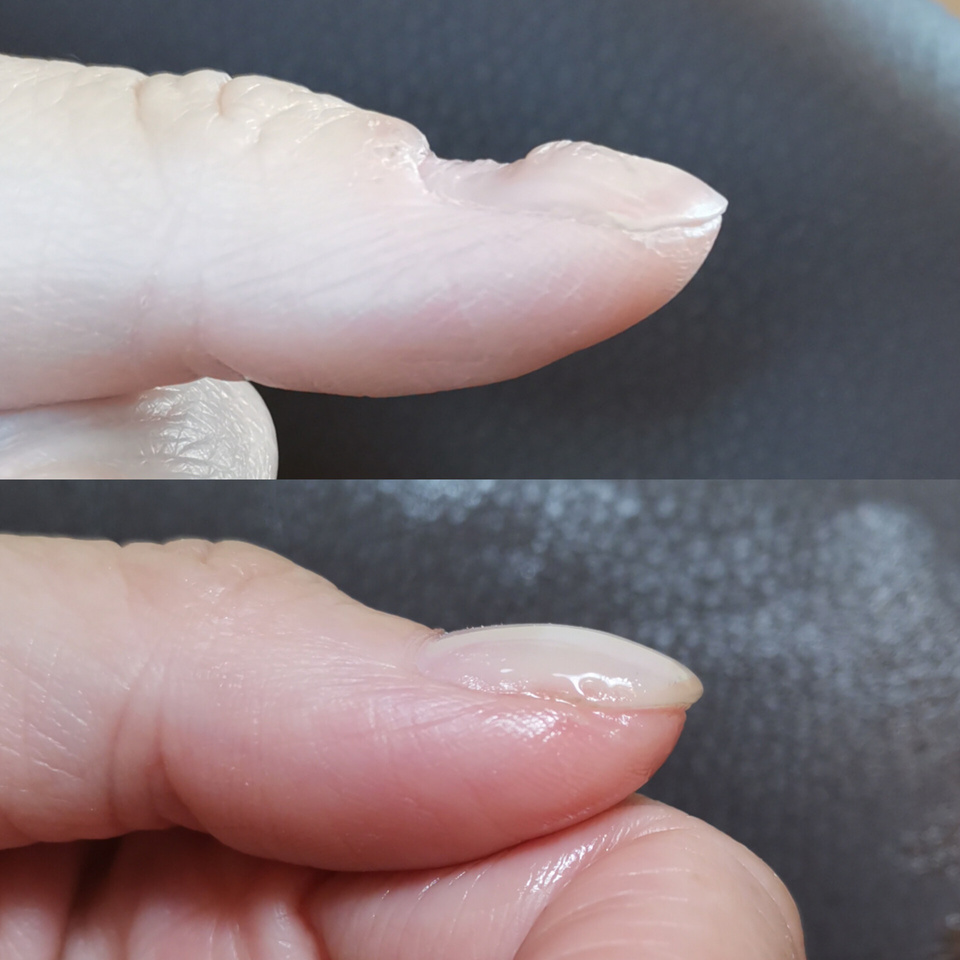 長年美容師さんをやっている友人が手荒れの凸凹爪でジェルのもちも悪くジェルネイルはできないものだと思っていたそうです。そんな友人に的確なアドバイスもできず、良くしてあげたいと思っても明確な知識がなく、何もしてあげられない自分に凹みました!