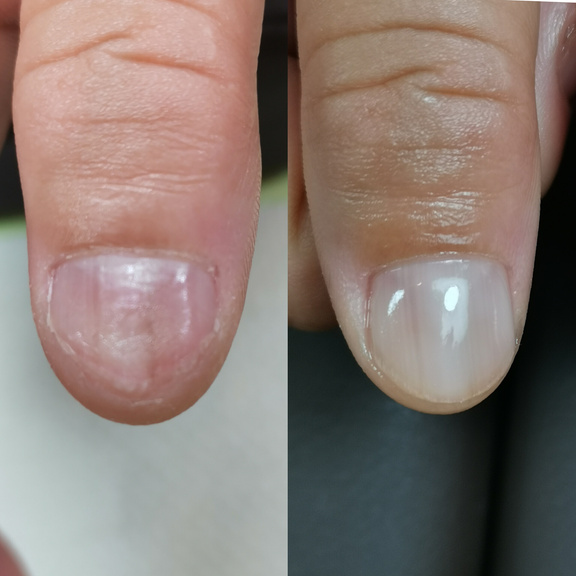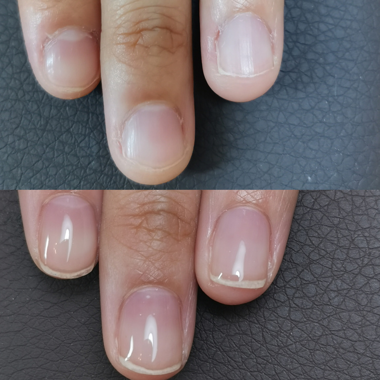 男の人のように平たくて丸い爪で、縦爪の人はぃぃなぁ〜と思うだけでした。まさか自分の爪が変わるなんて思ってもいなかったので、まだ3回ですが、爪の幅がキュッとなり、友達にもピンクの部分増えた?と言われるほど変化がありました。とても嬉しかったです。